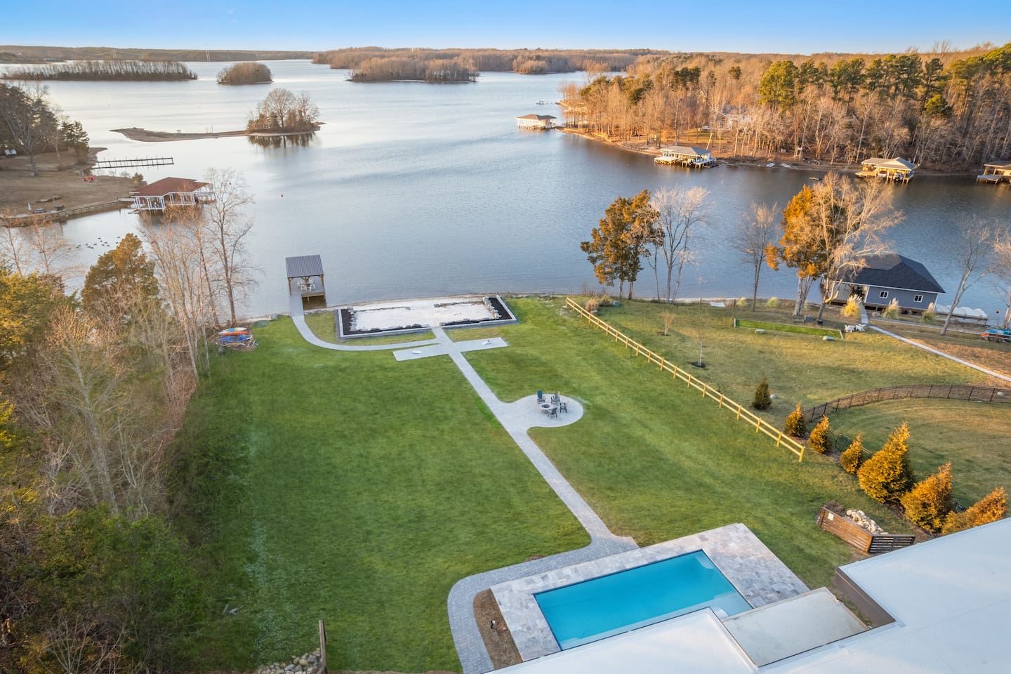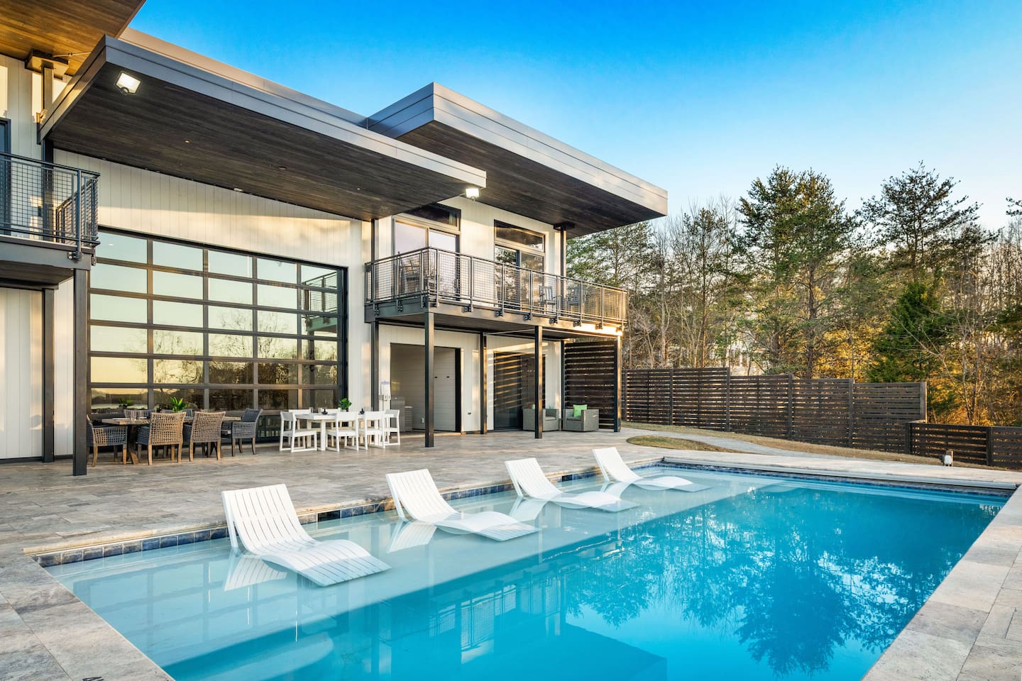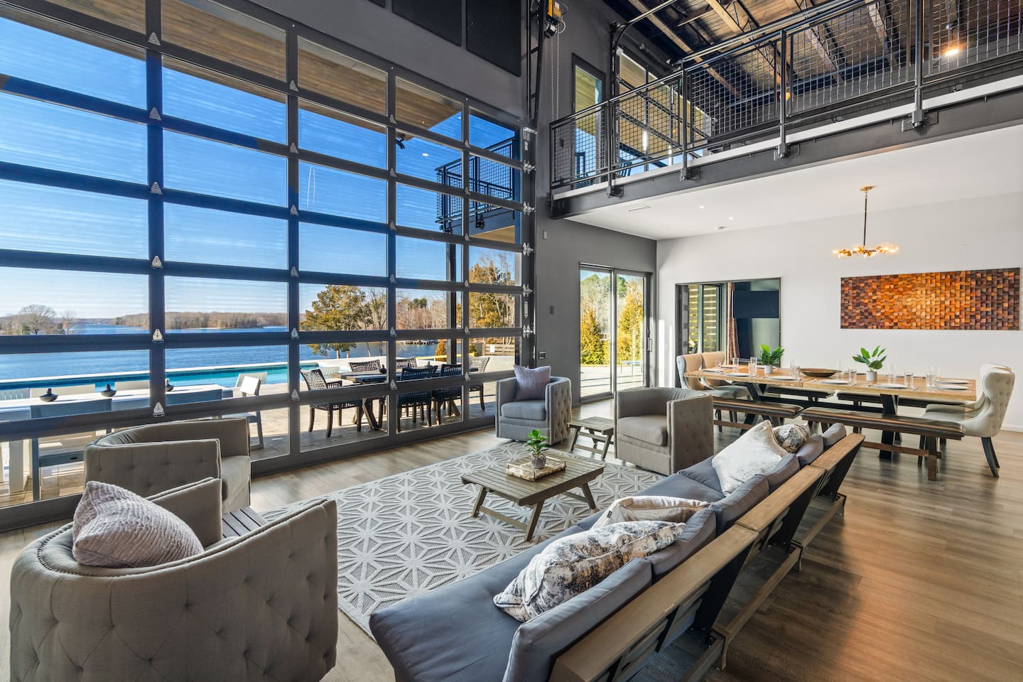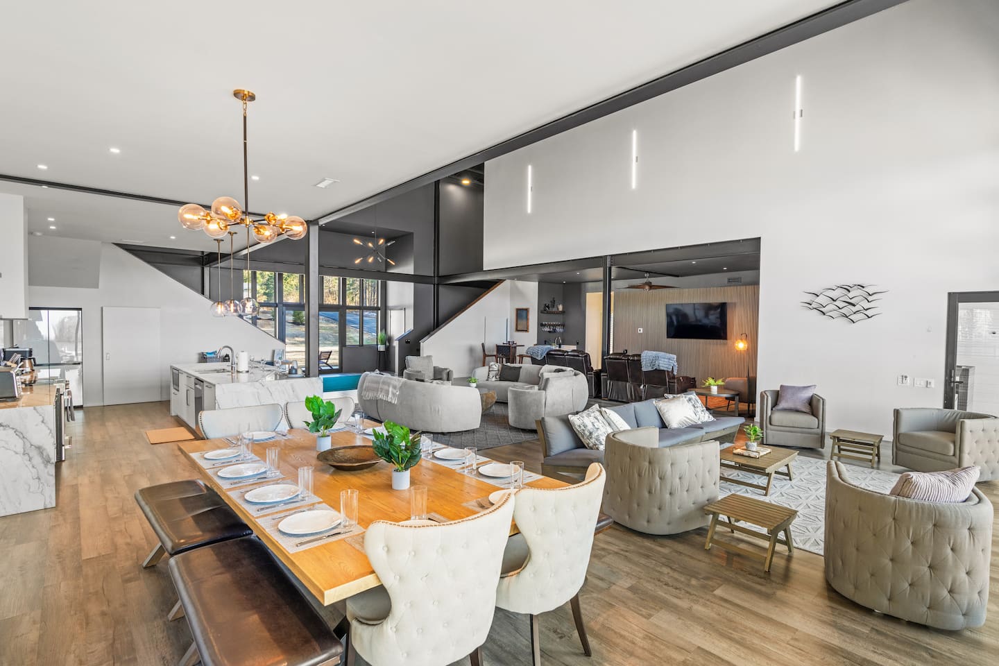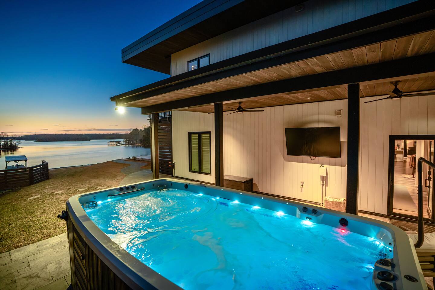 "Lake Anna Luxury" is a one-of-a-kind, ultra-modern lakefront villa with gorgeous sunset views over the lake. The exterior boasts a heated infinity pool, a massive 15 person swim spa (hot year round), a private beach, dock, and kayaks. Inside, you'll love the soaring industrial ceilings with walls of glass and modern finishes. All 8 bedrooms have private bathrooms, so the villa sleeps 20 comfortably. Plus, pet friendly! Managed by Chris at New School Hosting- see my profile for more reviews.