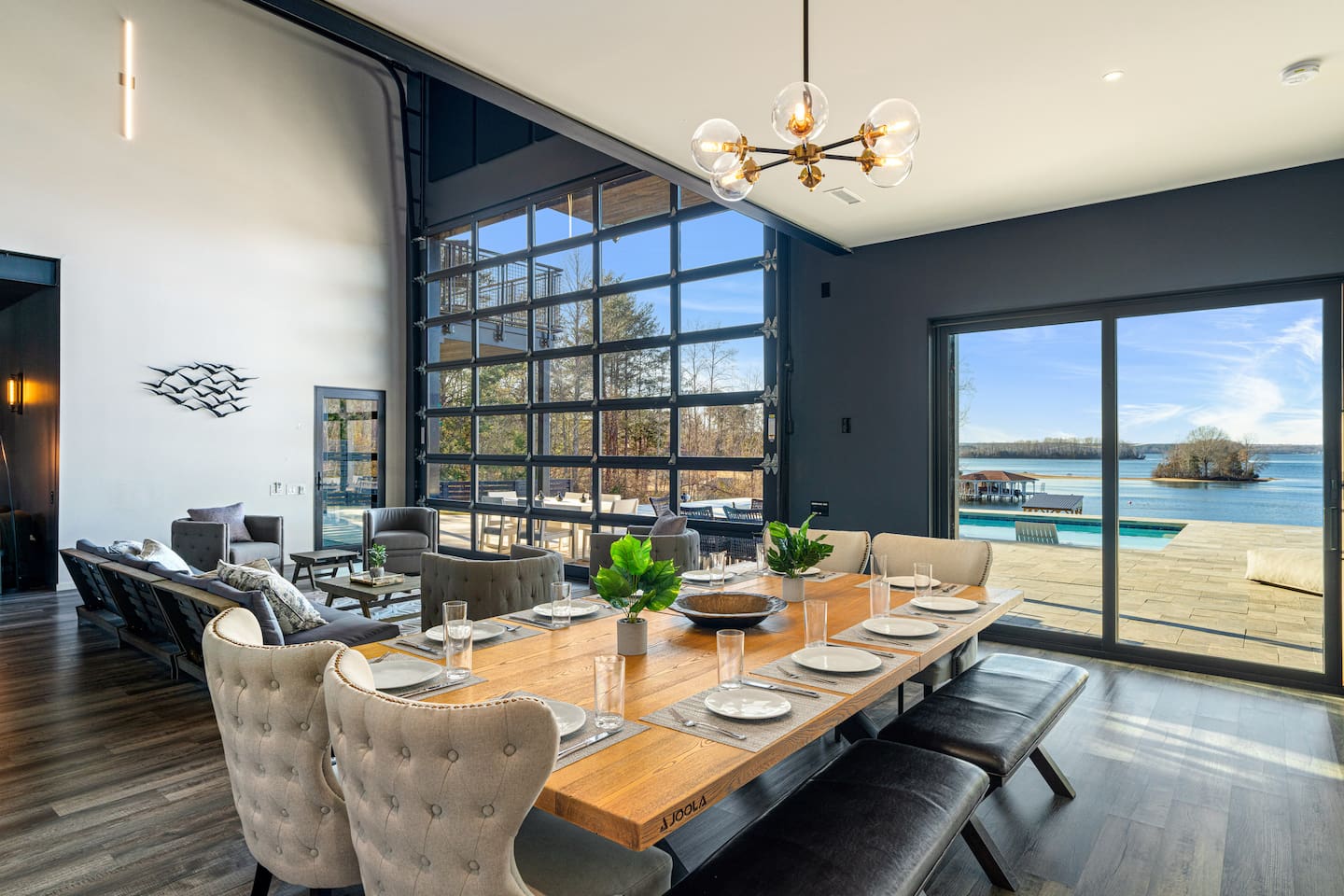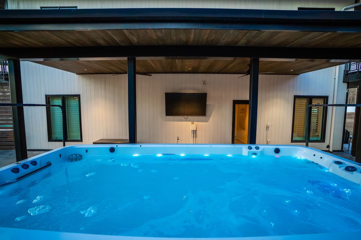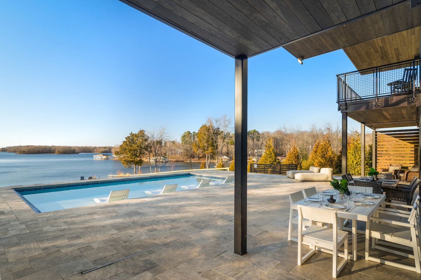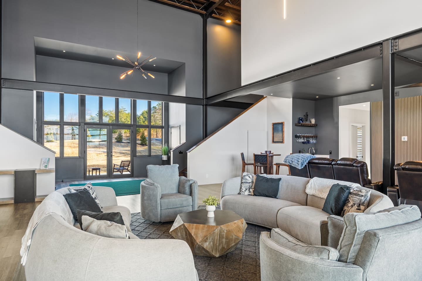 "Lake Anna Luxury" is a one-of-a-kind, ultra-modern lakefront villa with gorgeous sunset views over the lake. The exterior boasts a heated infinity pool, a massive 15 person swim spa (hot year round), a private beach, dock, and kayaks. Inside, you'll love the soaring industrial ceilings with walls of glass and modern finishes. All 8 bedrooms have private bathrooms, so the villa sleeps 20 comfortably. Plus, pet friendly! Managed by Chris at New School Hosting- see my profile for more reviews.