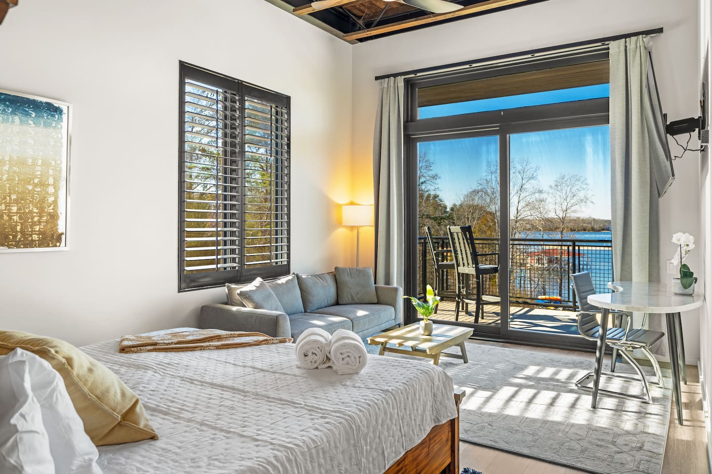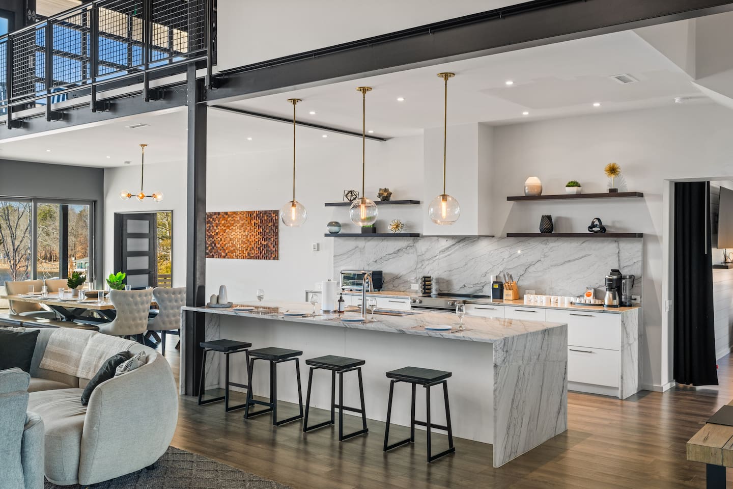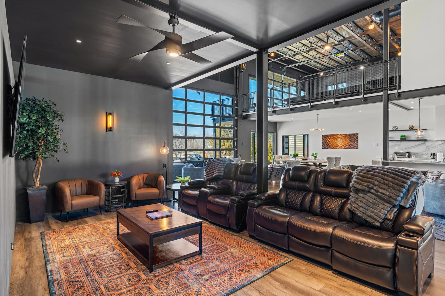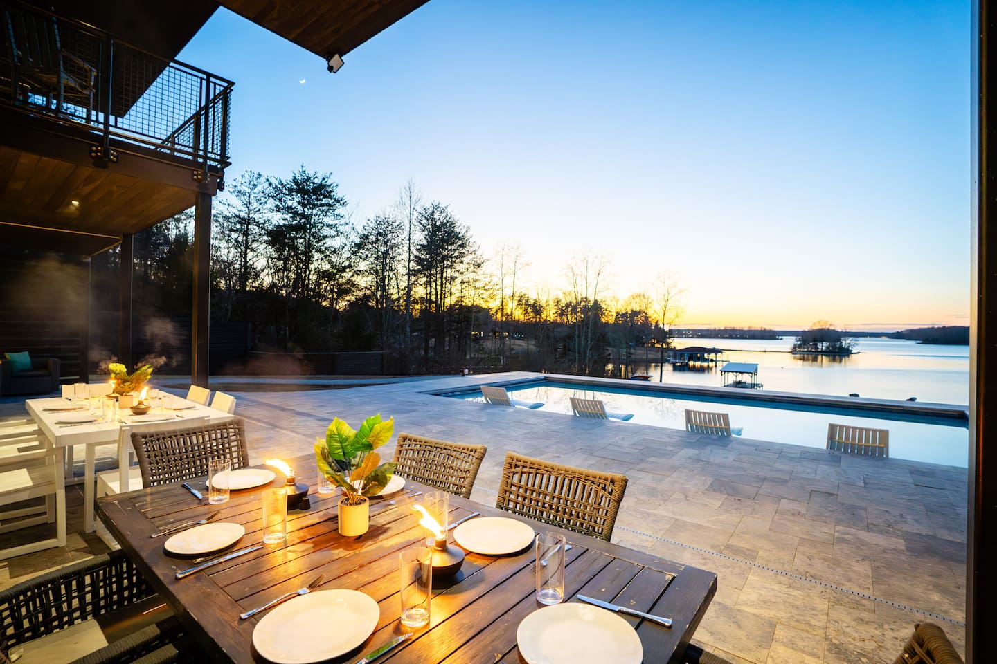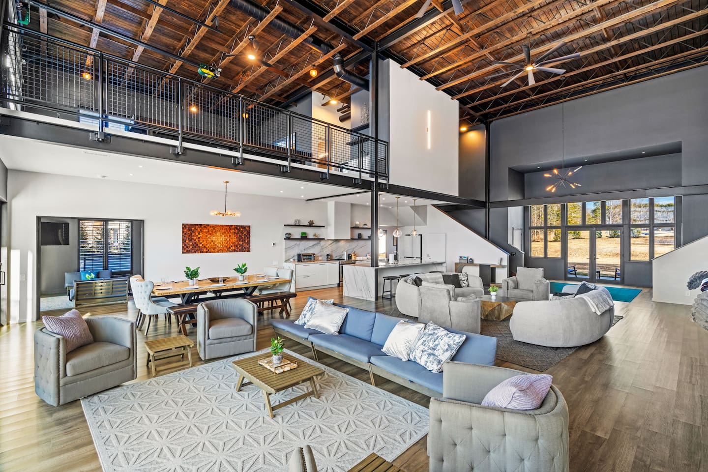 "Lake Anna Luxury" is a one-of-a-kind, ultra-modern lakefront villa with gorgeous sunset views over the lake. The exterior boasts a heated infinity pool, a massive 15 person swim spa (hot year round), a private beach, dock, and kayaks. Inside, you'll love the soaring industrial ceilings with walls of glass and modern finishes. All 8 bedrooms have private bathrooms, so the villa sleeps 20 comfortably. Plus, pet friendly! Managed by Chris at New School Hosting- see my profile for more reviews.