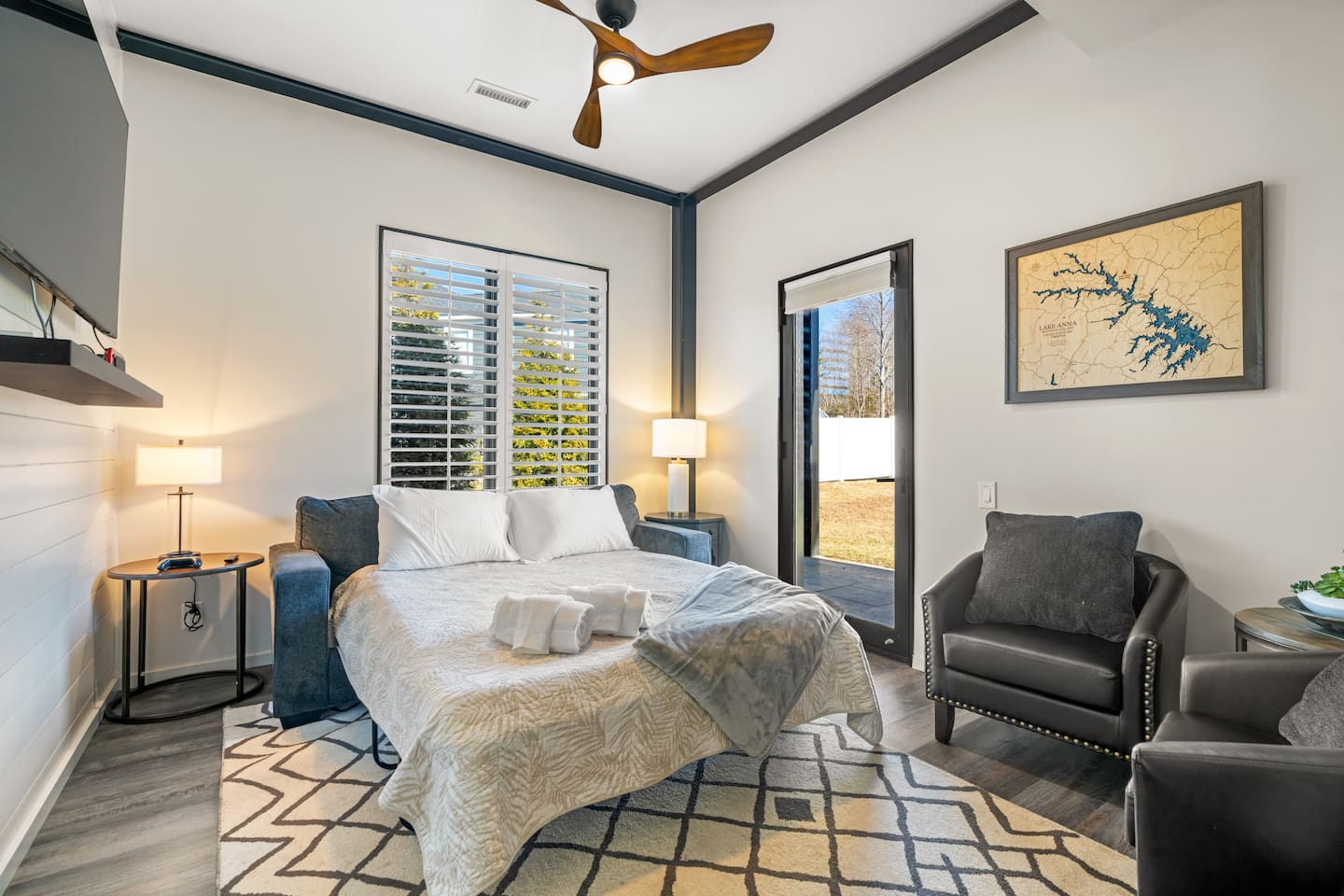 - Lake Anna Luxury is pet friendly! We allow up to 4 dogs with a $200 pet fee (total, not per pet or per night). - In order to provide you with a comfortable home that's maintains an ideal temperature, we are unable to allow you to open the large garage doors. - We are open to hosting small weddings or other events, but only with advance notice before booking. Additional charges may apply, and we may decline certain requests. Do not book this property if you intend on having more than 20 people at the property at any time, without checking with us first. - The driveway can easily fit up to 8 vehicles. Do not park on grass please. - Wifi is fast with a strong signal throughout the house and decks. All bedrooms, plus living room and loft, feature smart TVs where you can access all the main streaming services. - Linens and towels provided - We do require a separate rental agreement, which we will send a link to e-sign after you book. There are no additional fees beyond those listed here.
