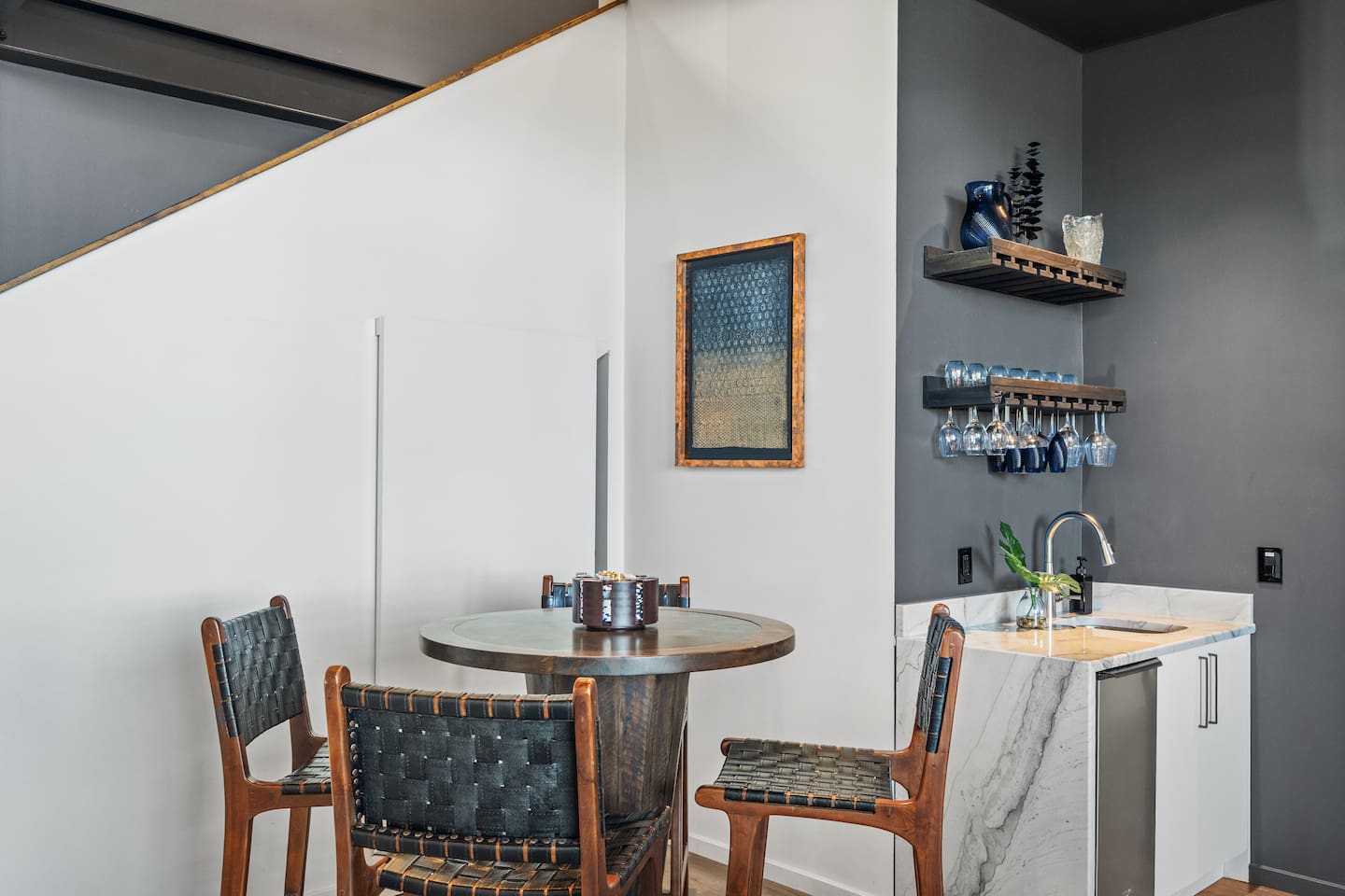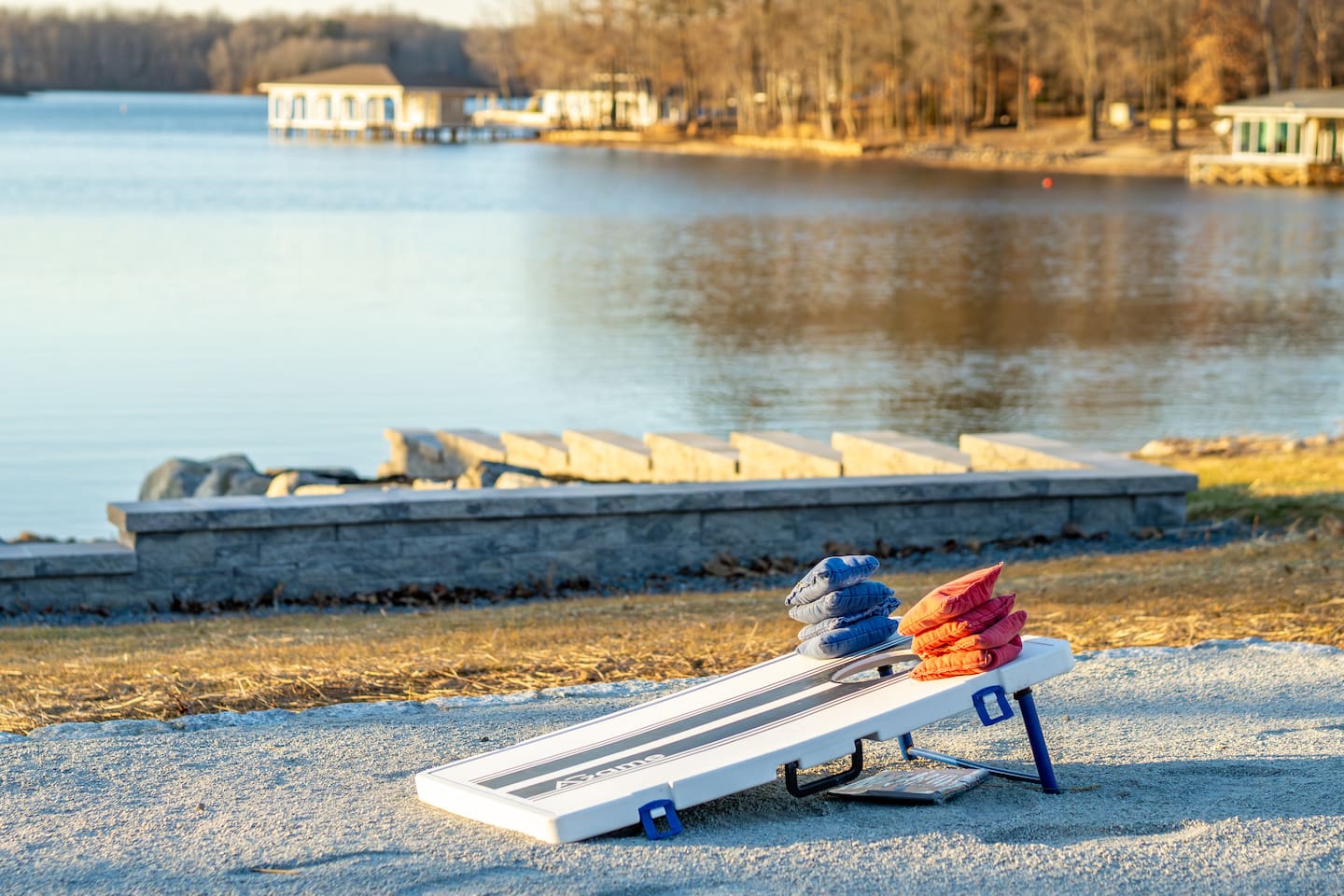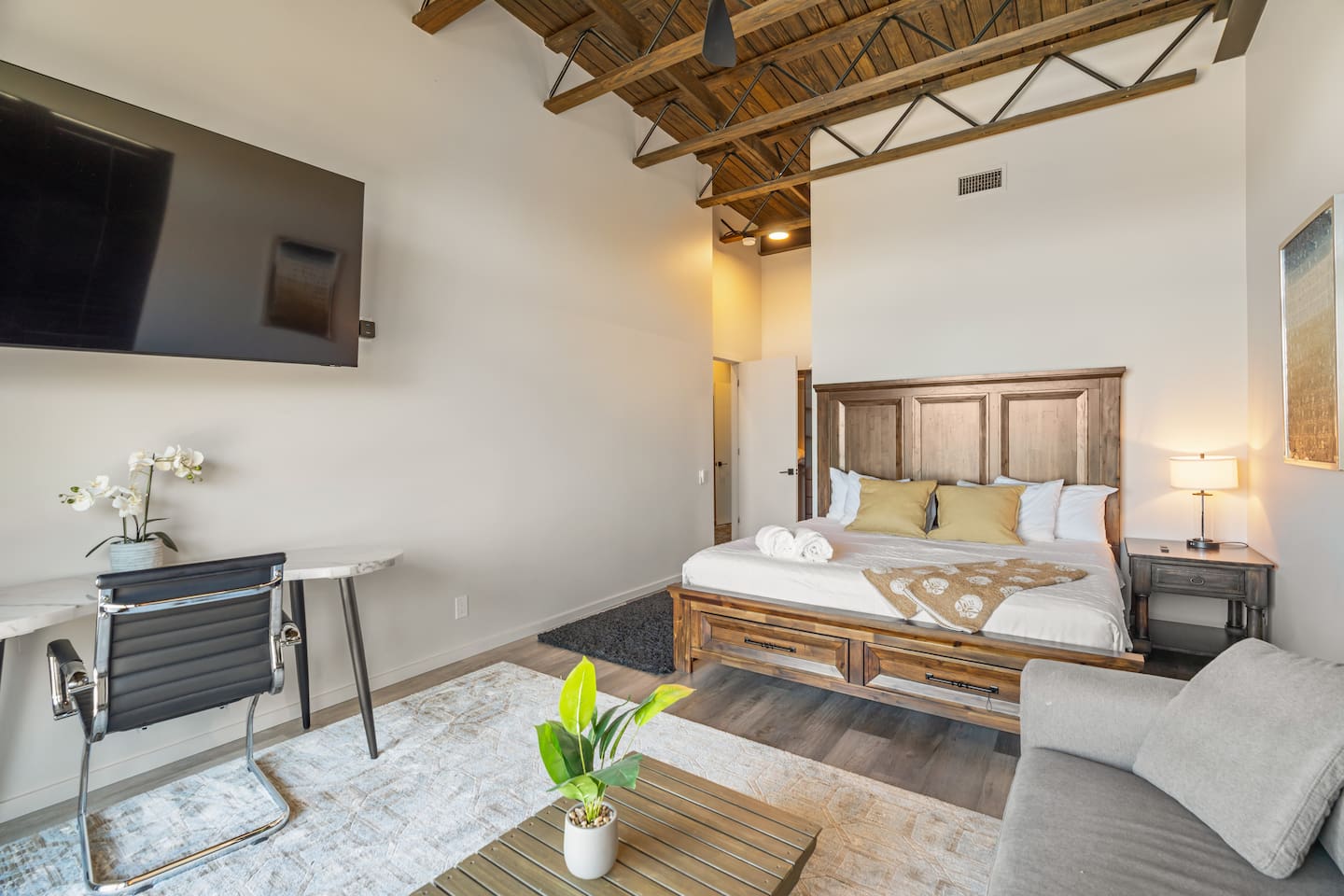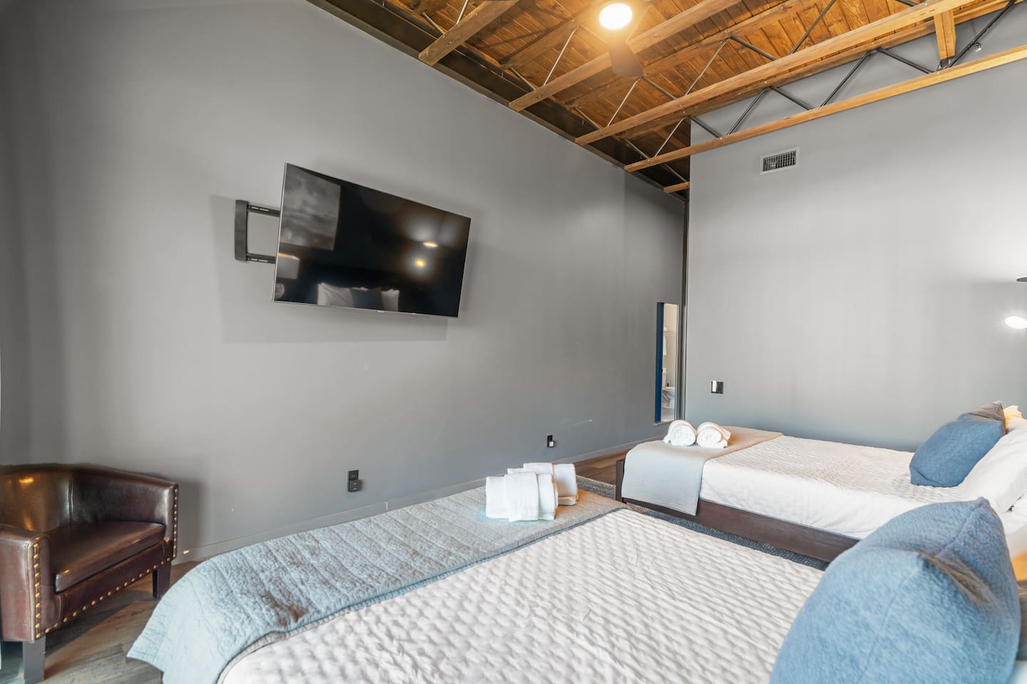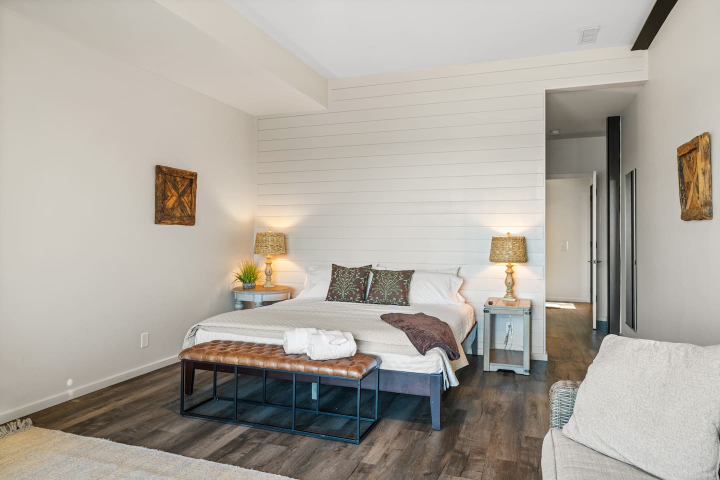 The home layout is as follows: EXTERIOR: - Private infinity pool with loungers both in and out of the water and plenty of tables/chairs for outdoor meals. Pool heat optional for $100+tax/day in spring and fall months. Advance notice required for pool heat. Pool is open April through November. - Swim spa (essentially a massive hot tub), large enough for 15, open year-round - Multiple seating/lounging areas - 2 outdoor TVs - Private beach with sandy water entrance - Private dock. There are a few boat rental companies on the lake if you'd like to have your own pontoon boat for your stay! - Kayaks and paddleboards provided - Wood-burning firepit (not pictured). Firewood provided. - Gas grill (propane is provided) - Large, flat front yard MAIN LEVEL LIVING AREA: - Open concept layout features a massive great room with soaring ceilings and lake views - Multiple conversation areas, as well as a TV viewing area with leather reclining couches - Kitchen features marble counters, premium appliances, and plenty of space - The dining area has a large table that seats 12, plus the nearly bar seats 4, and an additional bar-height table seats another 4. The main dining table can double as a ping pong table. LOFT AREA: - Loft is open to the lower level and features a massive sectional surrounding a big screen TV with video games - Behind the TV area is a full size shuffleboard table (not pictured), and a wet bar with beverage fridge - The balcony off the loft area has the best views of the lake, with bar height seating to take in the sunsets - Laundry room is also in this area of the home BEDROOMS / BATHROOMS: - BR1: Main level king with seating area and ensuite bath. Room faces the lake and has a patio. - BR2: Main level king with additional couch and ensuite bath. Room faces the lake and has a patio. - BR3: Main level queen with ensuite bath. Room faces front yard and has a patio. - BR4: Upstairs king with ensuite bath. Room faces front yard and has a private balcony. - BR5: Upstairs king with ensuite bath. Room faces the lake and shares a balcony with BR6. - BR6: Upstairs 2 queen bedroom with ensuite bath. Room faces the lake and shares a balcony with BR5. *Note: photos show 1 queen with seating area... room now has 2 queens and no additional seating area - BR7: Upstairs bedroom with queen bed plus a twin-over-twin bunk bed. Adjoining full bathroom also has an entrance to hallway to service loft area. Private balcony overlooking front yard. - BR8: Main level room near kitchen with sofa bed. Adjoining full bathroom also services main living space. Faces front yard and has patio. *IMPORTANT: this room is has a curtain, not a door, and thus is not completely private.